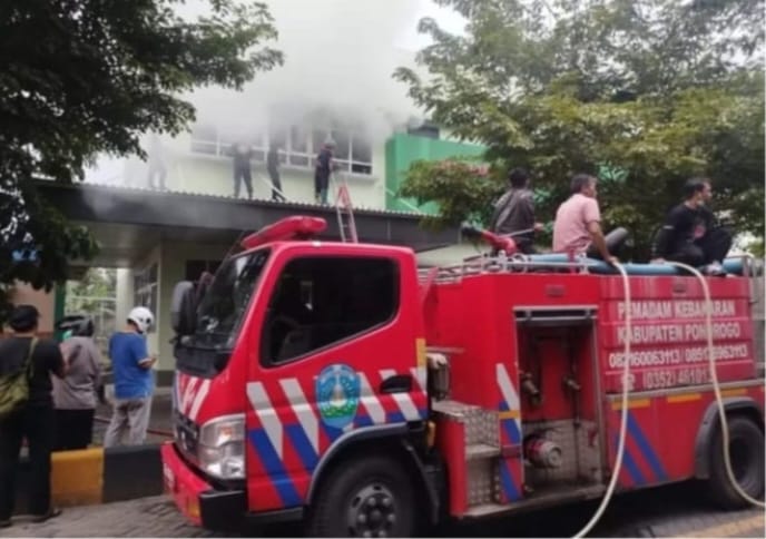 MATAHUKUM.ID/PONOROGO– Salah satu gedung RSUD dr. Harjono, Ponorogo, Jawa Timur, mengalami kebakaran, Minggu Petang (04/01/2026). Sejumlah pasien rawat inap di area yang berdekatan api dilaporkan dalam kondisi aman.