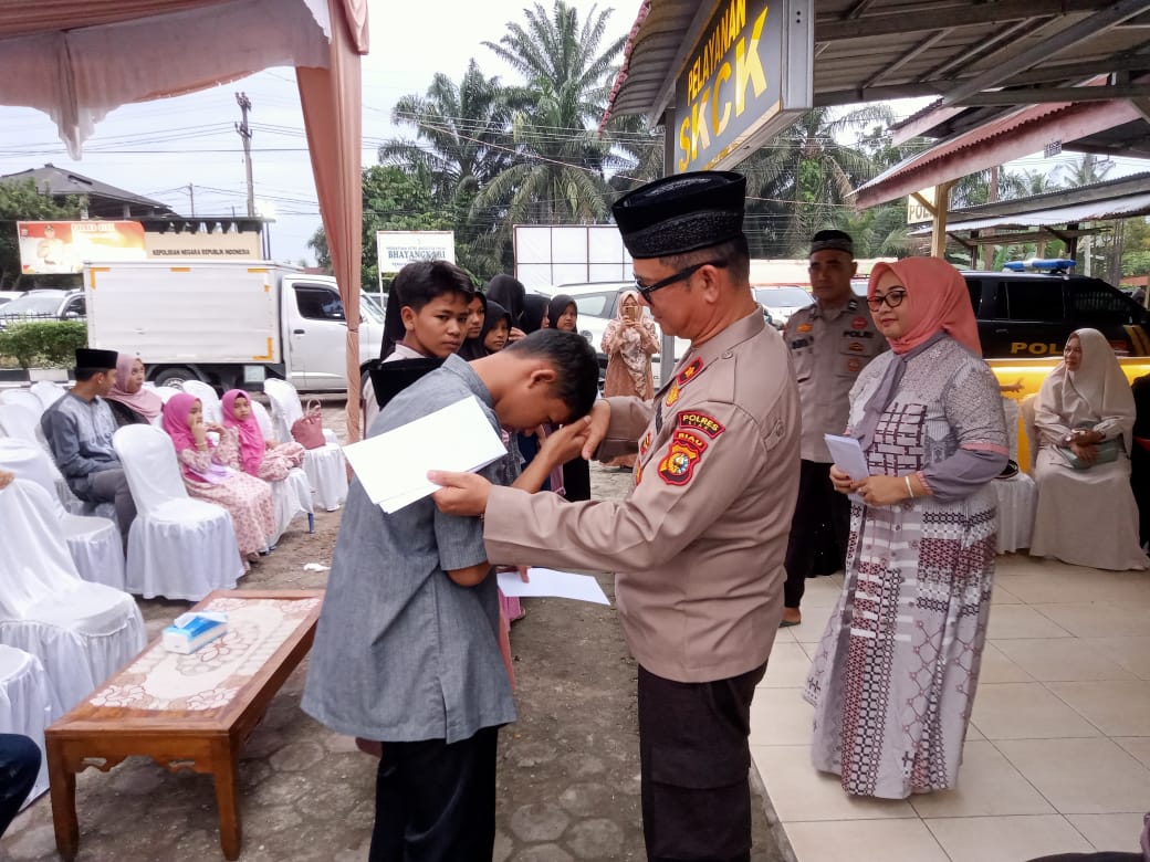 Acara kemudian dilanjutkan dengan pemberian santunan kepada anak yatim yang diserahkan langsung oleh Kapolsek Kandis dan Ketua Bhayangkari Ranting Kandis. Santunan ini diharapkan dapat meringankan beban mereka, terutama dalam menyambut bulan suci Ramadan.
