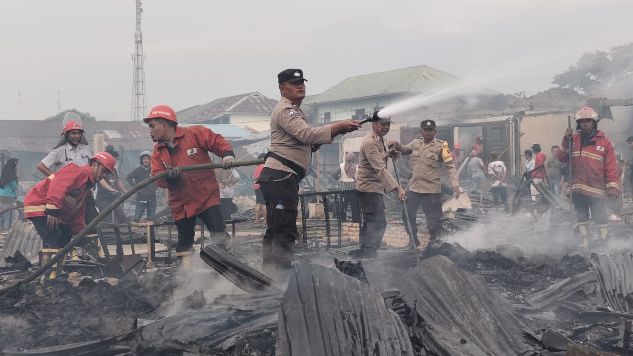 Menunjukkan kinerja koordinasi yang baik, personel Polsek Serbalawan segera meminta bantuan pemadam kebakaran dari PT Bridgestone. Dalam waktu 30 menit, tim pemadam tiba dan langsung berupaya memadamkan api, namun kondisi api semakin membesar dan menyambar ke kios-kios lainnya.