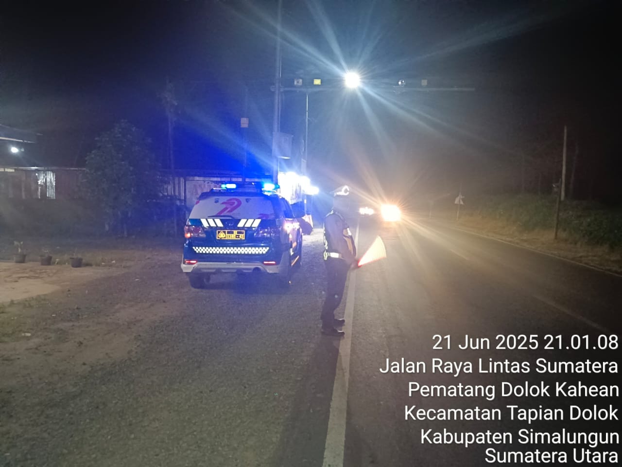 MATAHUKUM.ID/SIMALUNGUN — Di saat sebagian besar masyarakat tengah beristirahat menikmati malam yang tenang, para personel Satuan Lalu Lintas (Sat Lantas) Polres Simalungun justru memulai tugas mulia mereka. Kegiatan Blue Light Patrol (BLP) yang dilaksanakan pada Sabtu malam (21/6/2025) pukul 20.45 WIB hingga larut malam di sepanjang jalan strategis wilayah Simalungun menjadi bukti nyata dedikasi Polri dalam menjaga keamanan dan ketertiban masyarakat, bahkan di saat gelap gulita sekalipun.