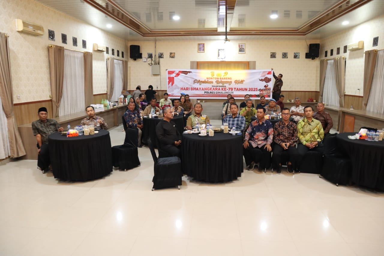 MATAHUKUM.ID/SIMALUNGUN — Suasana hangat dan penuh kebersamaan menyelimuti Aula Andar Siahaan, Mapolres Simalungun, Jumat (4/7/2025) malam. Keluarga besar Polres Simalungun bersama tokoh masyarakat dan warga sekitar berkumpul dalam acara nonton bareng pagelaran wayang kulit dengan lakon “Amartha Binangun” dalam rangka memperingati Hari Bhayangkara ke-79.