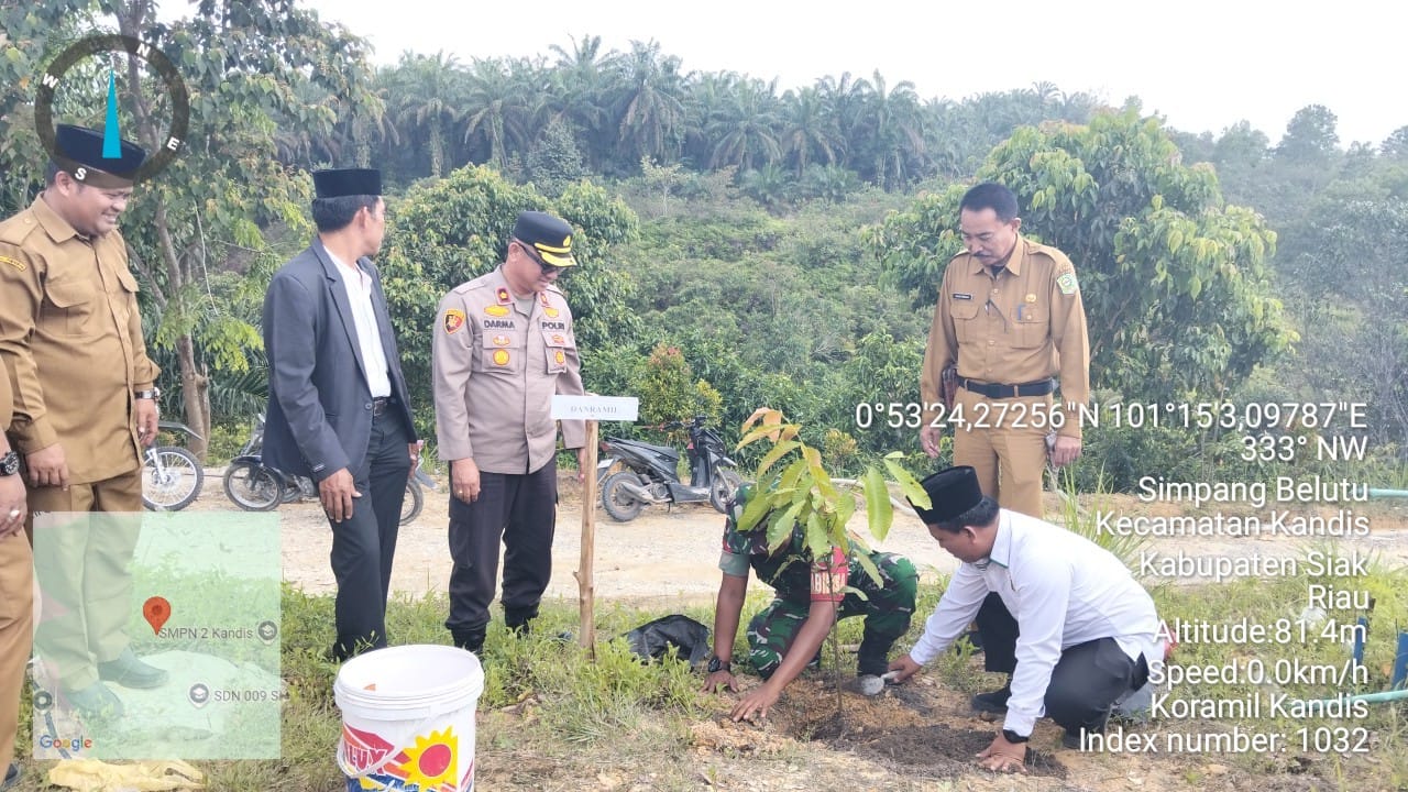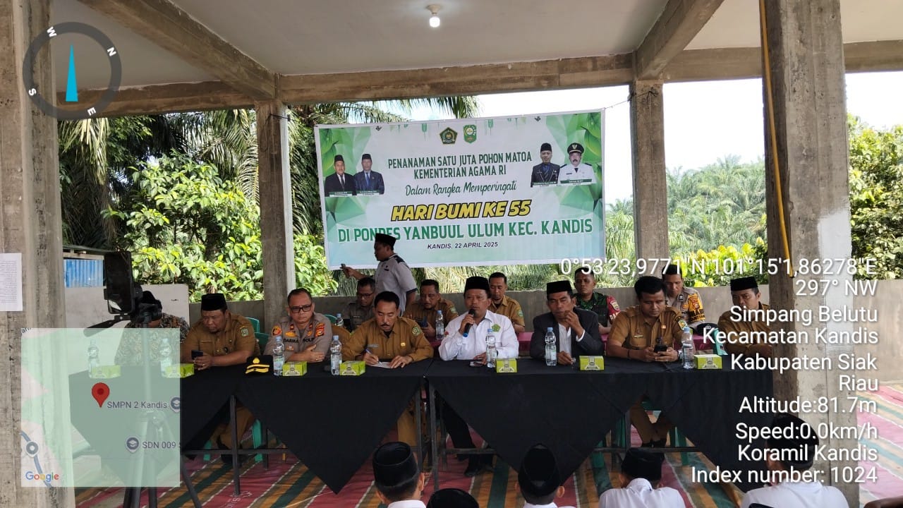 KANDIS – MATAHUKUM.ID – Dalam rangka peringatan Hari Bumi yang ke – 55 tahun, Babinsa Koramil 05/Pwk Kandis Kopda Dedi Irawan hari ini menghadiri kegiatan Penanaman Serentak Pohon Matoa yang bertempat di Pondok Pesantren Yanbuul Ulum Kelurahan Simpang Belutu Kecamatan Kandis Kabupaten Siak, Riau. Selasa, 22 April 2025.