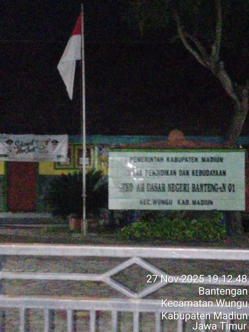 MATAHUKUM.ID/MADIUN – Lembaga pendidikan Sekolah Dasar Negeri (SDN) Bantengan 1, Desa Bantengan, Kecamatan Wungu, Kabupaten Madiun, Jawa Timur, kedapatan menerbengkelaikan bendera kebangsaan Merah Putih. Pokok persoalannya, sekolahan itu diketahui tidak menurunkan bendera Merah Putih pada tempo yang seharusnya sudah diturunkan, yakni di waktu senja atau malam menjelang.