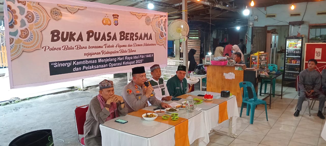 Sementara Kapolres Batu Bara AKBP Doly Nelson H.H., Nainggolan, S.H., M.H mengucapkan terima kasih atas sambutan yang di berikan kepada diri nya beserta rombongan, rasa senang bisa bertemu dan berkumpul dengan masyarakat, tokoh agama, pemuda dan anak anak yatim piatu serta kaum Dhuafa, apalagi ini momen Ramadhan Suci yang kiranya bisa membawa berkah untuk kita semua, harap Doly kepada masyarakat yang hadir.