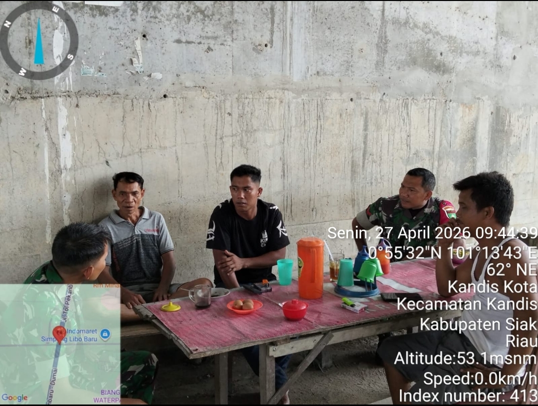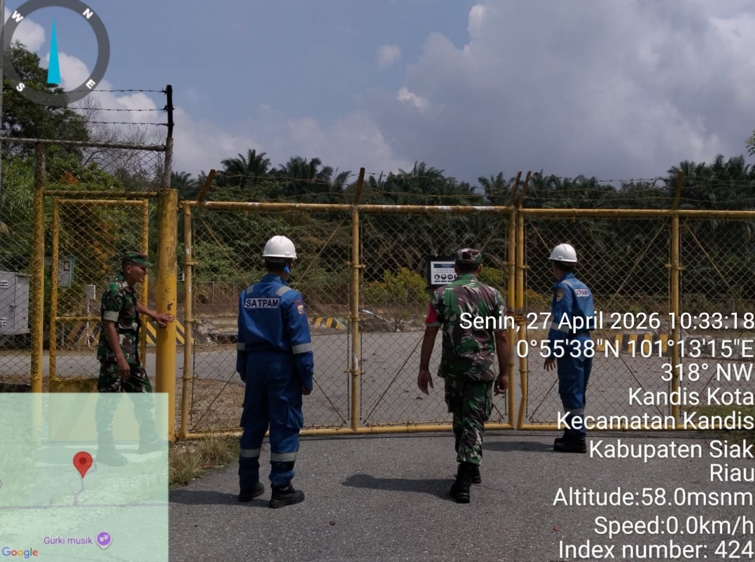 KANDIS – MATAHUKUM.ID – Dalam upaya TNI memberi rasa aman kepada Objek Vital Nasional PT. Pertamina Hulu Rokan (PHR) Dua Personil Babinsa Koramil 05/Pwk Kandis Kodim 0322/Siak, Sertu Abdul Arfan dan Koptu I Ketut Budiasa Bersama petugas PHR melaksanakan kegiatan Patroli dan Bin Komsos tentang SKK Migas. Senin, 27 April 2026.