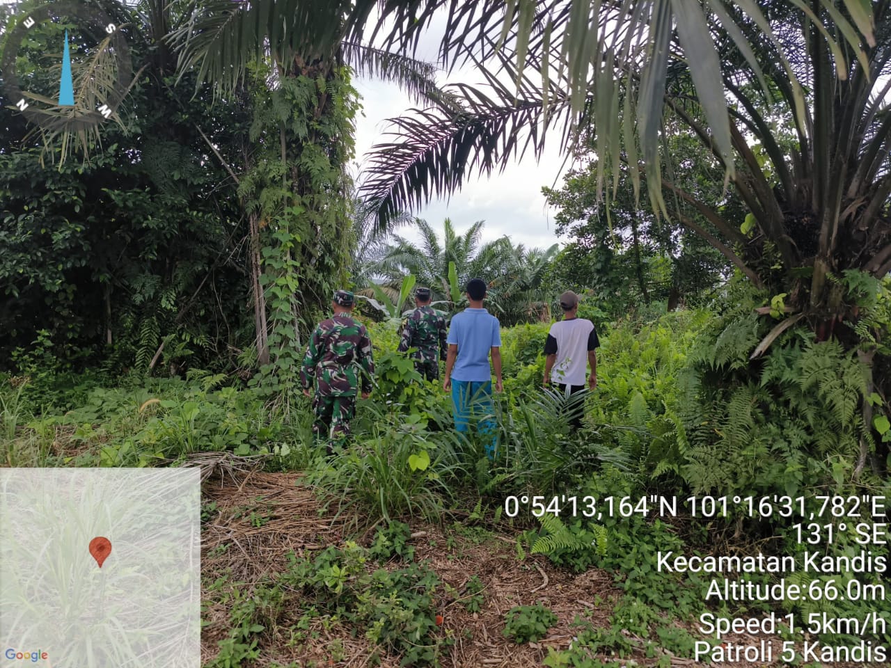 KANDIS – MATAHUKUM.ID – Babinsa Koramil 05/Pwk Kandi yaitu Peltu Yus Armin dan Sertu Korenus JU bersama dua orang warga tempatan melaksanakan kegiatan rutin yaitu berpatroli karhutlah diarea lahan rawan terbakar hari ini di wilayah Kelurahan Telaga Sam Sam Kecamatan Kandis Kabupaten Siak, Riau. Minggu, 6 April 2025.