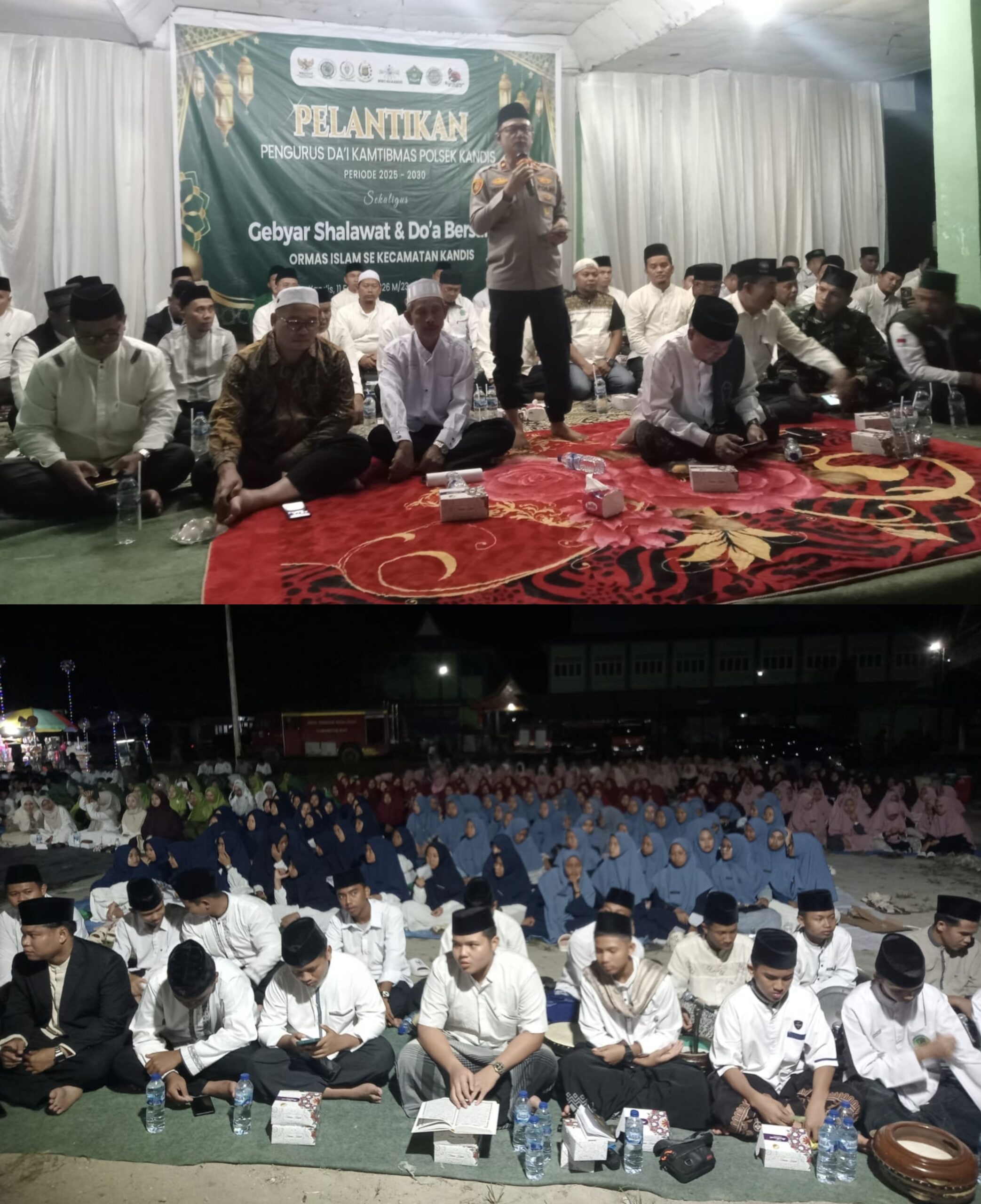 KANDIS – MATAHUKUM.ID – Polsek Kandis Polres Siak menggelar Pelantikan Pengurus Da’i Kamtibmas periode 2025–2030 yang dirangkai dengan Gebyar Sholawat dan Doa Bersama Ormas Islam se-Kecamatan Kandis, Rabu malam, 11 Februari 2026.