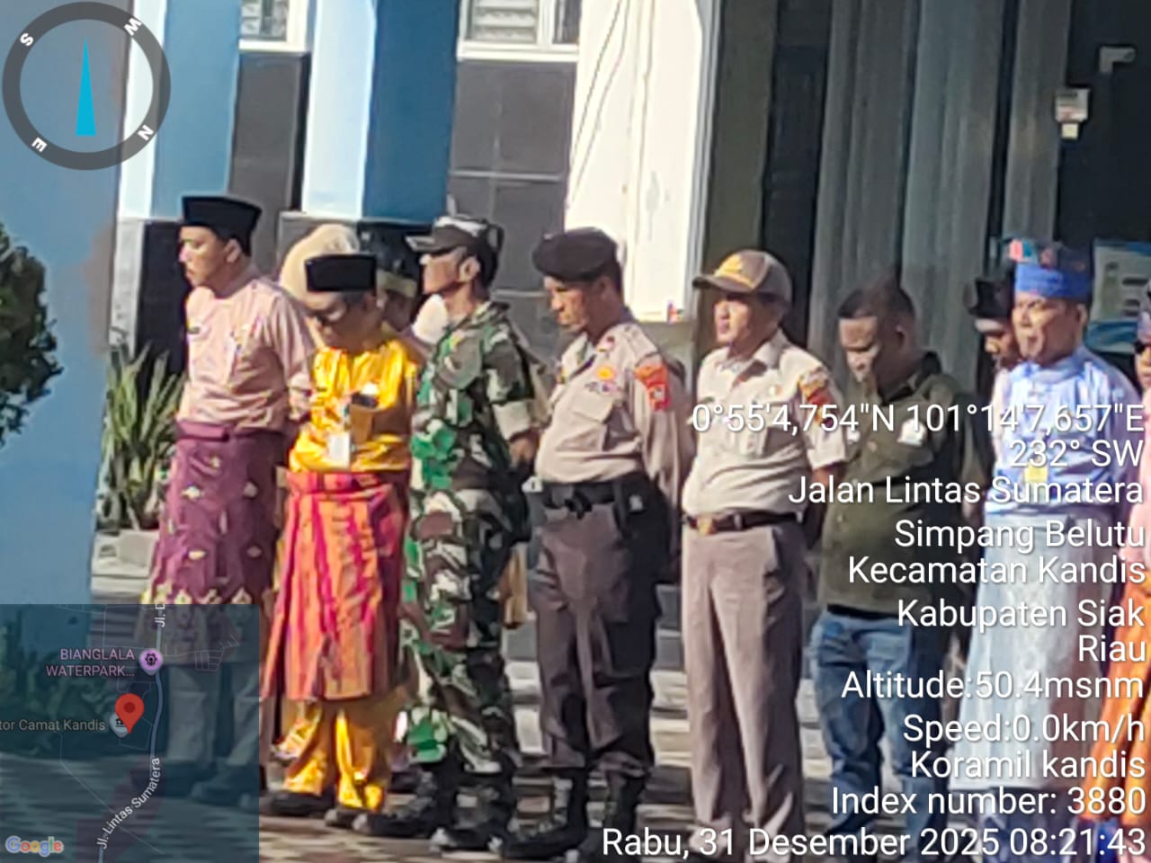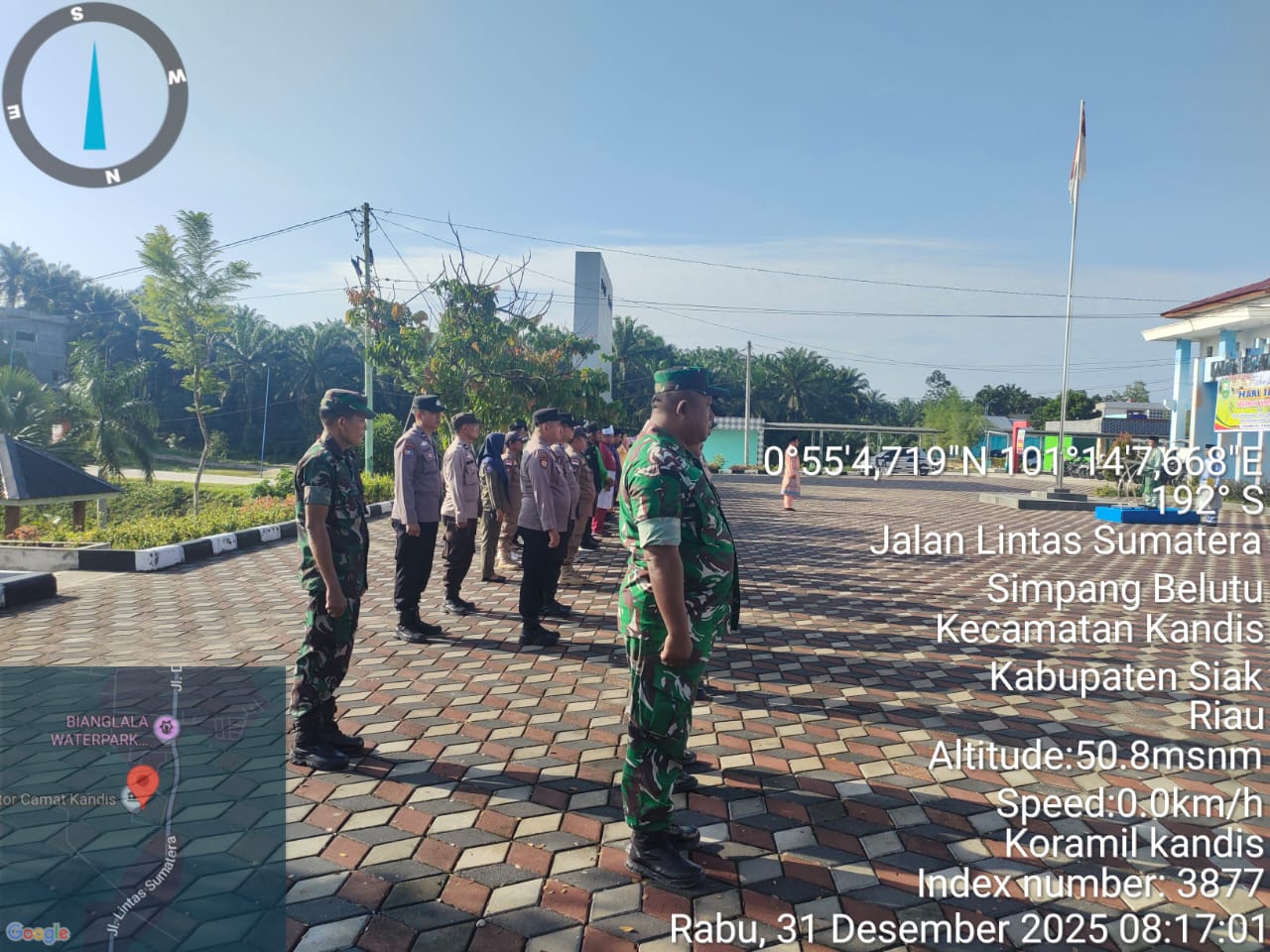 KANDIS – MATAHUKUM.ID – Danramil O5/PWK Kandis yang diwakili Peltu Yus Armin menghadiri acara Apel bersama dalam rangka Peringatan hari jadi Kecamatan Kandis ke- 23 Tahun yang bertempat di halaman Kantor Camat Kandis Kelurahan Telaga Sam Sam Kecamatan Kandis Kabupaten Siak, Riau. Rabu, 31 Desember 2025.