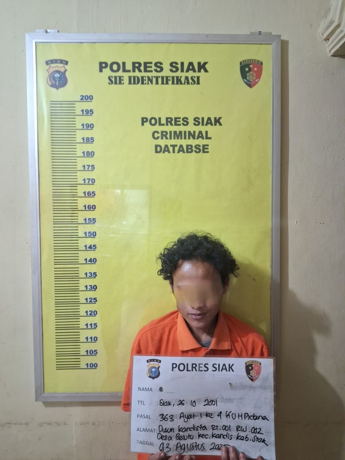 Kapolres Siak AKBP Eka Ariandy Putra, S.H., S.I.K., M.Si., melalui Kapolsek Kandis, Kompol Darmawan, S.H., M.H. di dampingi Kanit Reskrim Polsek Kandis AKP Putra Amor, S.H. membenarkan kejadian tersebut dan menjelaskan,” Bahwa peristiwa pencurian terjadi pada Sabtu pagi, 2 Agustus 2025 sekitar pukul 06.30 WIB.