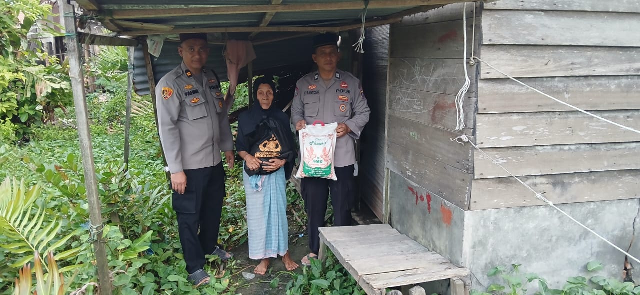Dalam rangka kegiatan Polsek Medang Deras Iptu Ahmad fahmi SH dan personil Polsek Medang deras memberikan sembako kepada warga tidak mampu/kaum duafa.