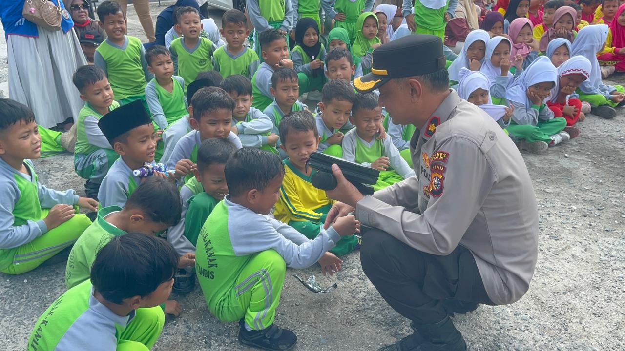 Kegiatan edukatif ini diikuti oleh siswa-siswi dari TK Jambai Indah, TK Ananda, dan TK Simasturi Kecamatan Kandis. Dalam suasana penuh keceriaan, anak-anak diperkenalkan berbagai hal dasar terkait keselamatan berlalu lintas, mulai dari pentingnya penggunaan helm berstandar SNI hingga pengenalan rambu-rambu lalu lintas.