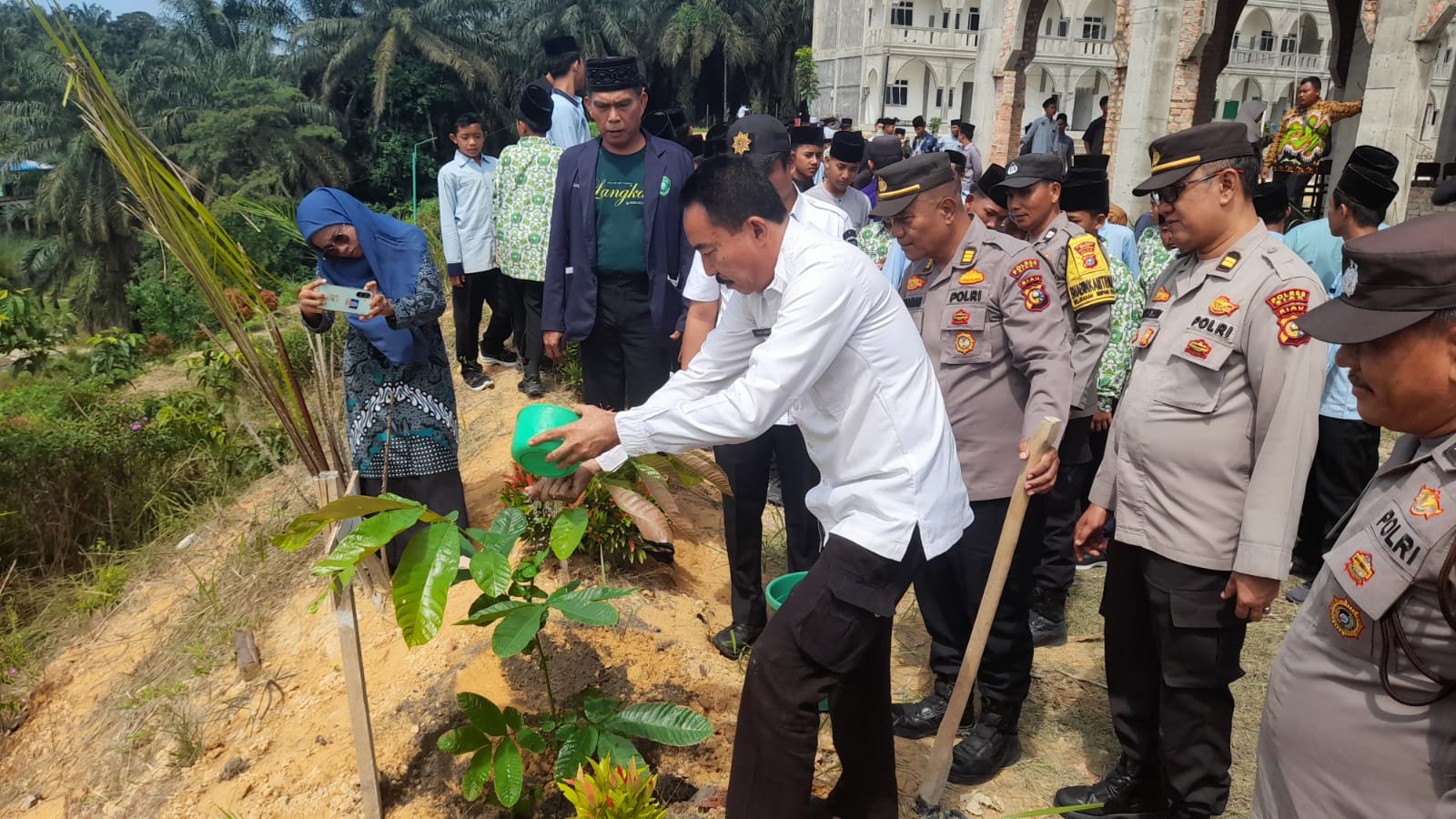 Kegiatan penanaman pohon berlangsung penuh semangat, melibatkan unsur pemerintah, tokoh agama, hingga para santri.