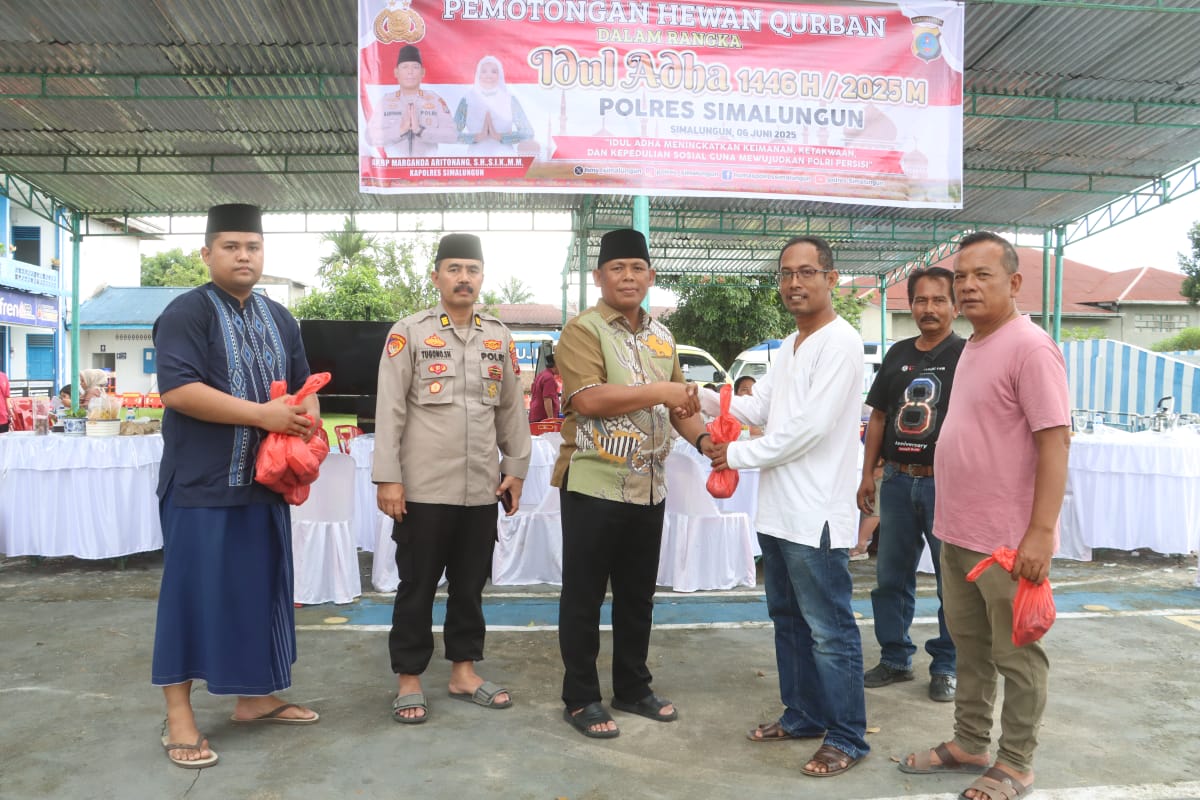 Daging kurban hasil pemotongan tersebut didistribusikan kepada berbagai pihak sebagai bentuk kepedulian sosial Polres Simalungun. Penerima daging kurban meliputi personil Polres Simalungun dan keluarga, panti asuhan, pondok pesantren, warkauri (wartawan karib), masyarakat sekitar lokasi kegiatan, insan pers/wartawan, anak yatim dan piatu, para ustadz, serta Forum Kerukunan Umat Beragama (FKUB) Kabupaten Simalungun.