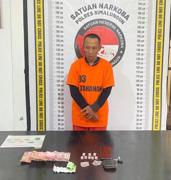 MATAHUKUM.ID/SIMALUNGUN–Simalungun – Satuan Reserse Narkoba Polres Simalungun melalui Polsek Saribu Dolok kembali menunjukkan komitmen dalam pemberantasan peredaran gelap narkotika di wilayah hukum Kabupaten Simalungun. Pada Rabu (30/4/2025), petugas berhasil menangkap seorang pria berinisial AS (41) yang diduga sebagai pengedar narkoba di kawasan Jalan Sudirman ujung, Kelurahan Saribu Dolok, Kecamatan Silimakuta.
