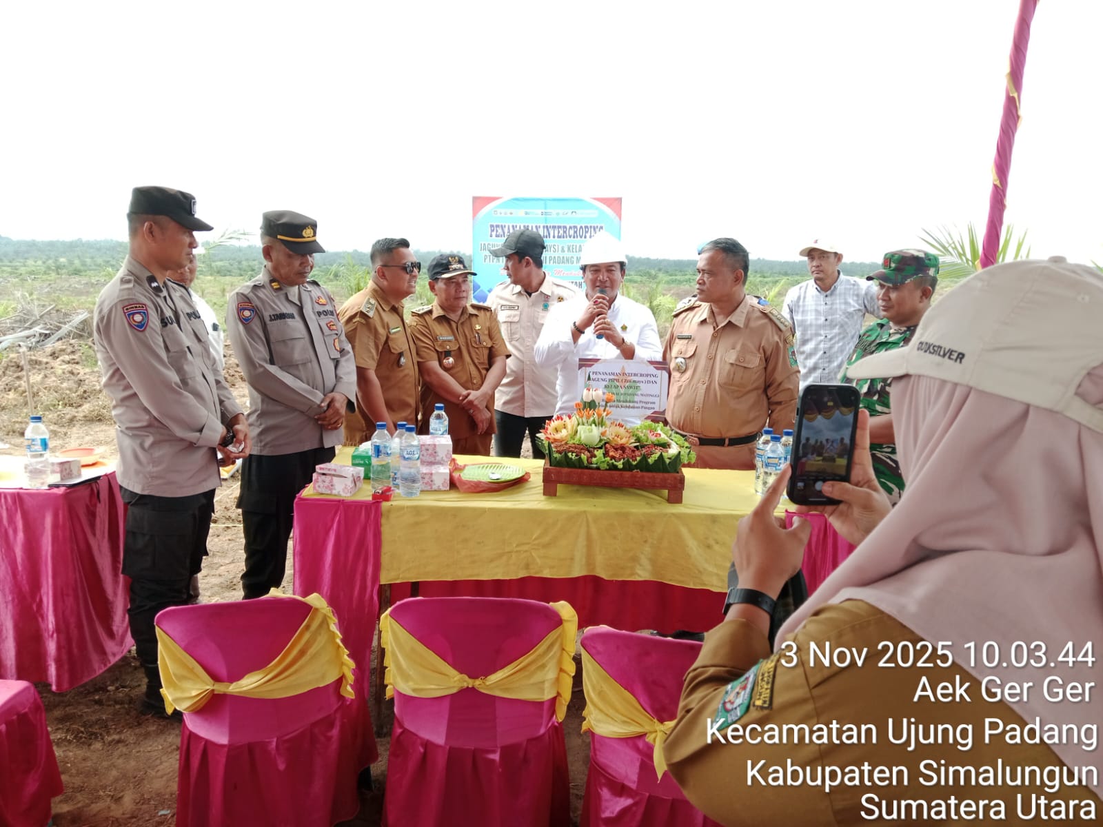 Kata sambutan juga disampaikan oleh Camat Ujung Padang yang memberikan dukungan penuh terhadap program penanaman jagung ini. Selanjutnya, giliran pihak kepolisian yang diwakili oleh Kepala Unit Sabhara Polsek Bosar Maligas, Iptu Jaya Tarigan, menyampaikan kata sambutan dan arahan.