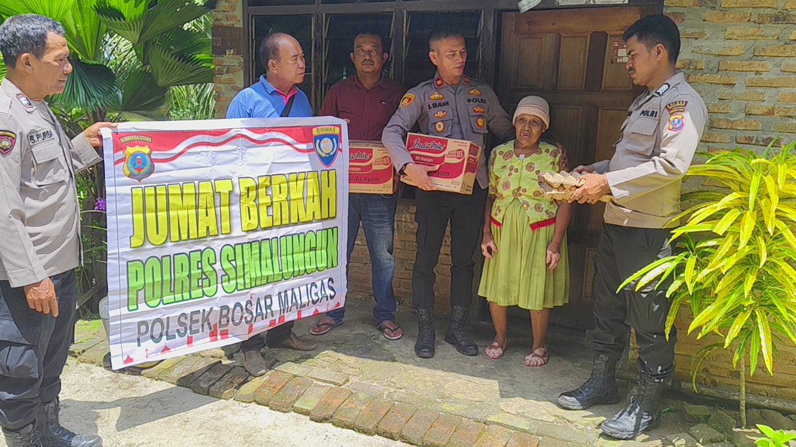 MATAHUKUM.ID/SIMALUNGUN — Kepolisian Sektor (Polsek) Bosar Maligas kembali menunjukkan kepedulian terhadap masyarakat kurang mampu melalui program “Jumat Berkah” dengan menyalurkan bantuan sembako kepada warga yang membutuhkan di wilayah Kelurahan Bosar Maligas, Kecamatan Bosar Maligas, Kabupaten Simalungun, Sumatera Utara, pada Jumat (25/4/2025).