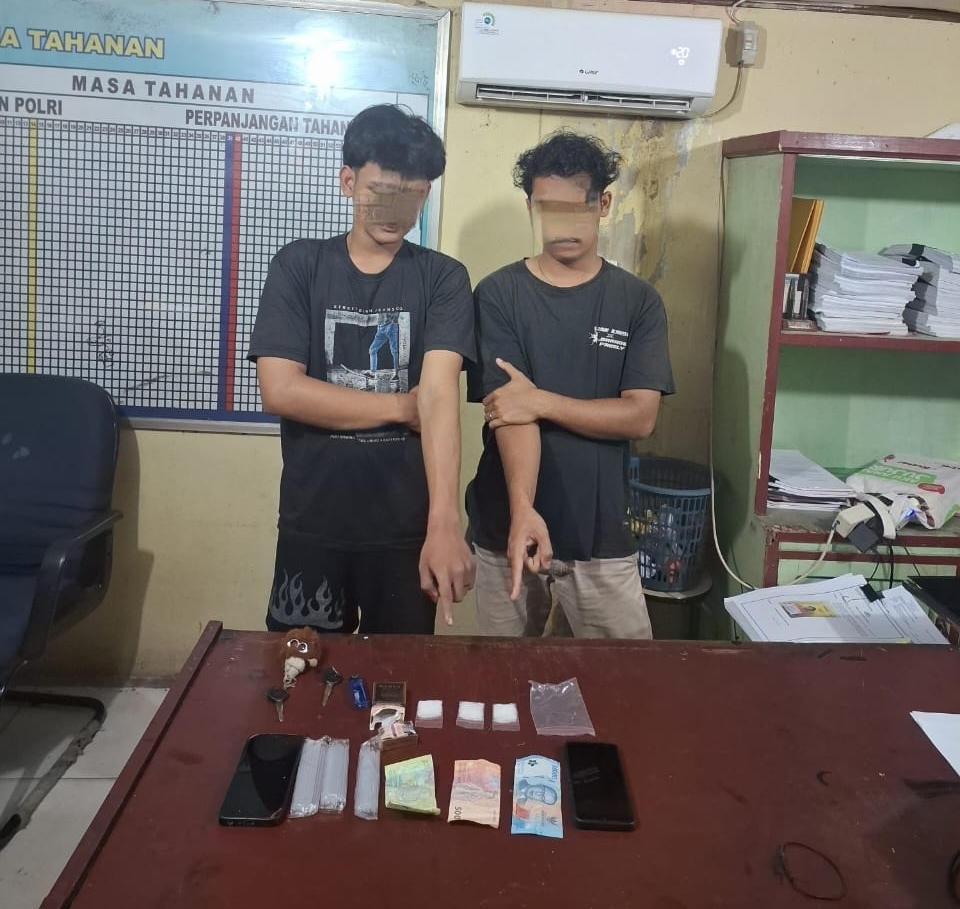 Saat diberhentikan, salah satu dari mereka sempat menjatuhkan kotak rokok yang ternyata berisi narkotika jenis shabu dan Keduanya langsung diamankan beserta barang bukti,” terang Kapolsek.