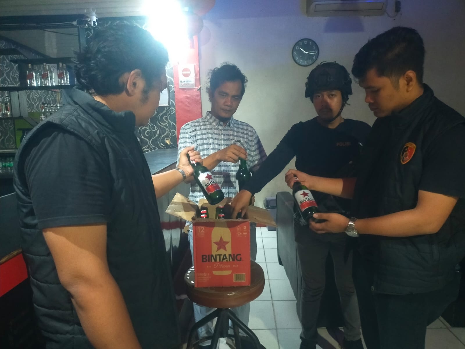 Dalam pelaksanaannya, tim melakukan pemeriksaan di sejumlah lokasi, di antaranya Bintang Cafe Jalan Hangtuah Kelurahan Telaga Samsam dan Nusantara Room Cafe Jalan Raya Pekanbaru–Duri Km 80 Kelurahan Kandis Kota, Kecamatan Kandis, Kabupaten Siak. Dari dua lokasi tersebut, petugas mengamankan sebanyak 24 botol minuman keras jenis Anker beer.