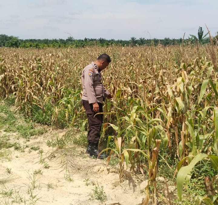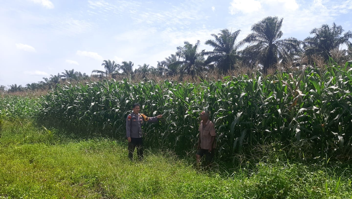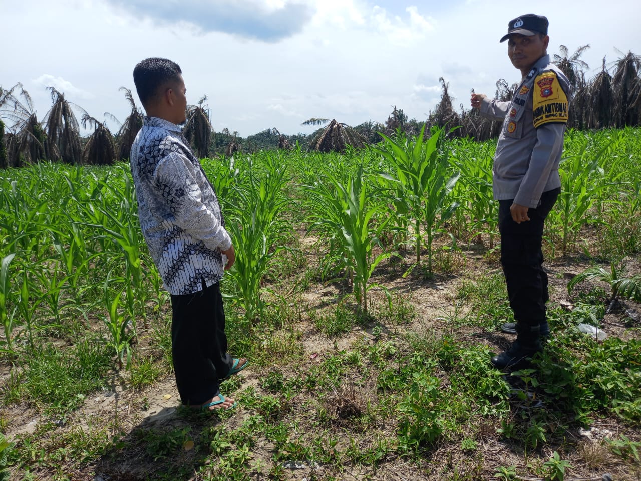 Jajaran Bhabinkamtibmas bersama kelompok tani di wilayah Kecamatan Kandis melakukan pengecekan dan monitoring perkembangan tanaman jagung di beberapa titik lahan budidaya masyarakat.