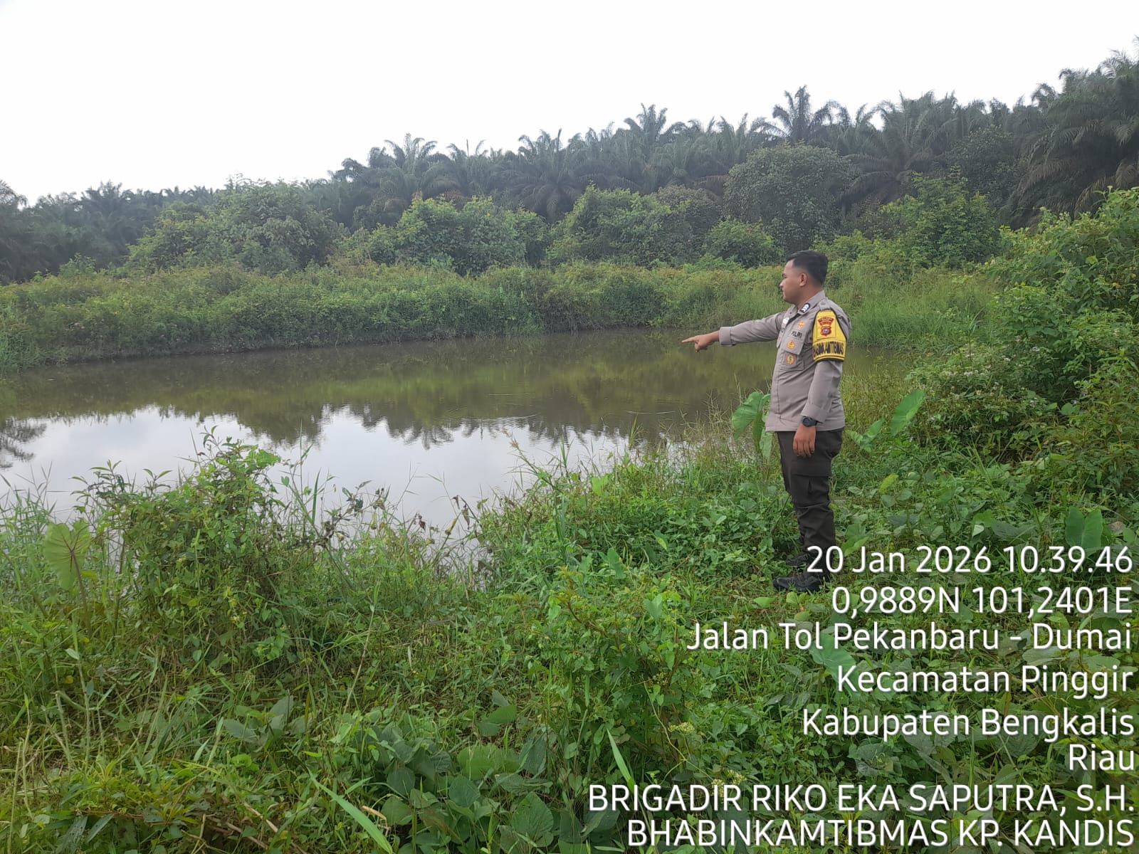 Salah satunya melalui kegiatan pengecekan embung dan patroli Karhutla yang dilaksanakan oleh Bhabinkamtibmas di Kampung Kandis dan Kampung Belutu, Kecamatan Kandis, Kabupaten Siak, Selasa, 20 Januari 2026.