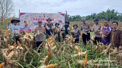 KANDIS – MATAHUKUM.ID – Dalam rangka mendukung Program Presiden Republik Indonesia terkait ketahanan pangan nasional, Polsek Kandis Polres Siak melaksanakan kegiatan panen raya jagung di Jalan Sudirman, Kelurahan Telaga Samsam, Kecamatan Kandis, Kabupaten Siak, Selasa, 10  Februari 2026, sekitar pukul 10.00 WIB.