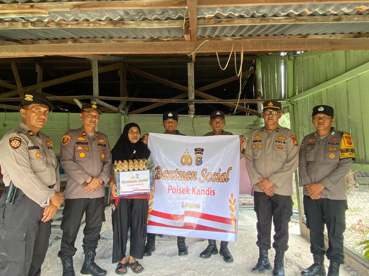 Penyaluran bantuan tersebut dipimpin langsung oleh jajaran Polsek Kandis dengan menyerahkan paket sembako dan kebutuhan pokok.