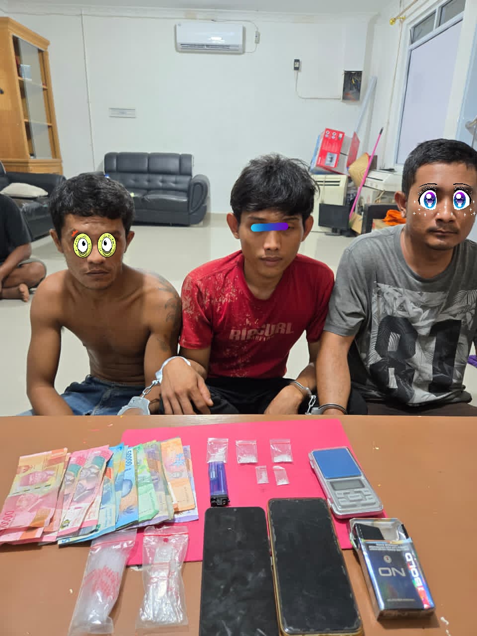 Setibanya di lokasi, petugas langsung melakukan pemantauan dan berhasil mengamankan tiga orang pria yang berada di tempat kejadian. Ketiga pelaku tersebut masing-masing berinisial MS (32), RC (28), dan TS (30). Dari tangan tersangka MS, petugas menemukan barang bukti berupa 5 paket diduga narkotika jenis sabu, dengan rincian 3 paket berukuran besar dan 2 paket kecil yang diduga siap edar.