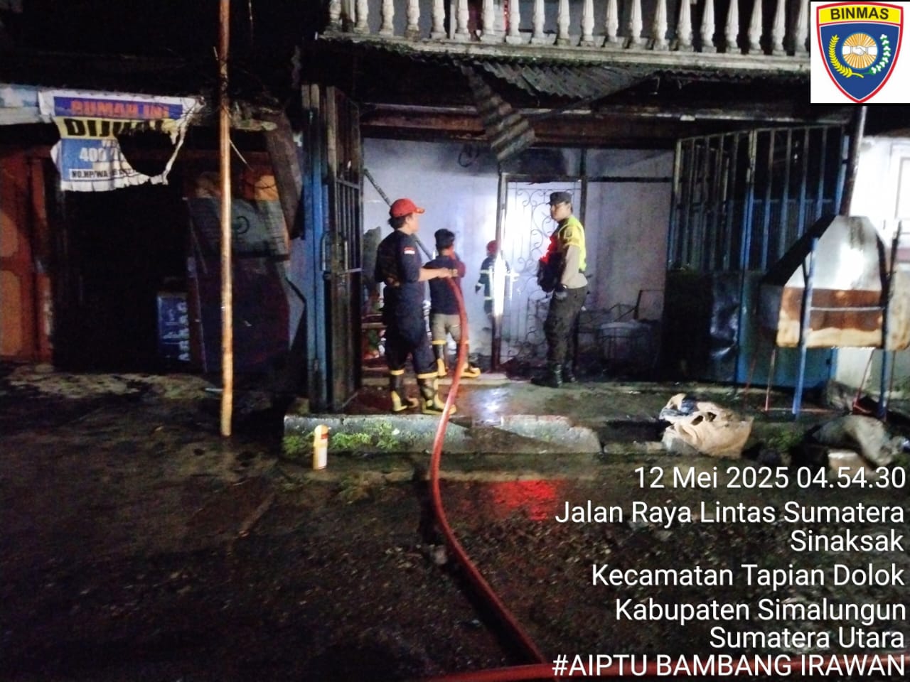 MATAHUKUM.ID/SIMALUNGUN — Sebuah kejadian kebakaran melanda tiga unit rumah di Simpang Sinaksak, Lingkungan V Sinaksak, Kelurahan Sinaksak, Kecamatan Tapian Dolok, Kabupaten Simalungun, pada Senin dini hari (12/5/2025).