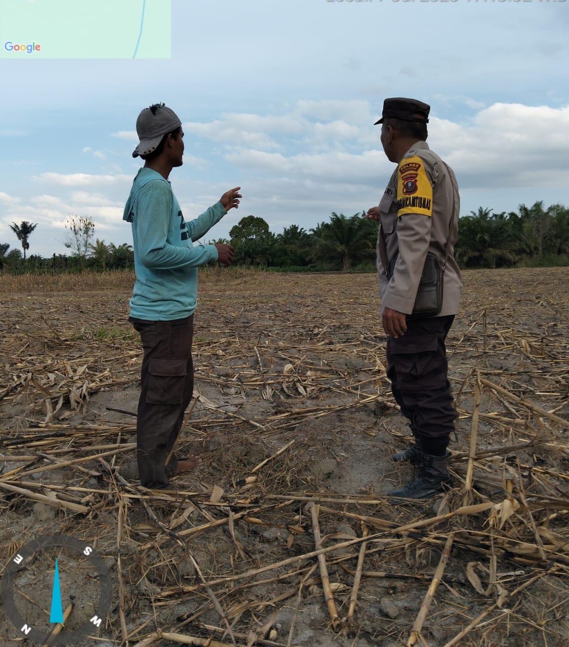 Dalam pelaksanaan kegiatan sambang dan patroli dialogis tersebut, Aipda Vonsa Tampubolon secara langsung berinteraksi dengan masyarakat petani di Nagori Pulobayu untuk menyampaikan himbauan penting terkait bahaya pembakaran lahan sembarangan di tengah kondisi cuaca kering yang berkepanjangan.
