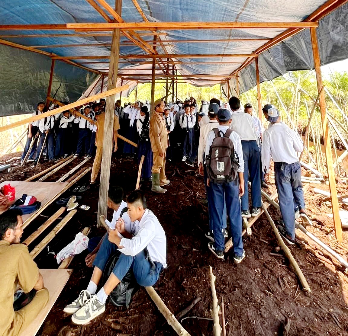 Dizaman moderen sekarang ini Anak Bonai masih belajar dibawah tenda dan teriknya matahari.