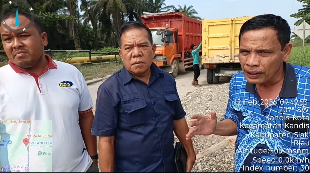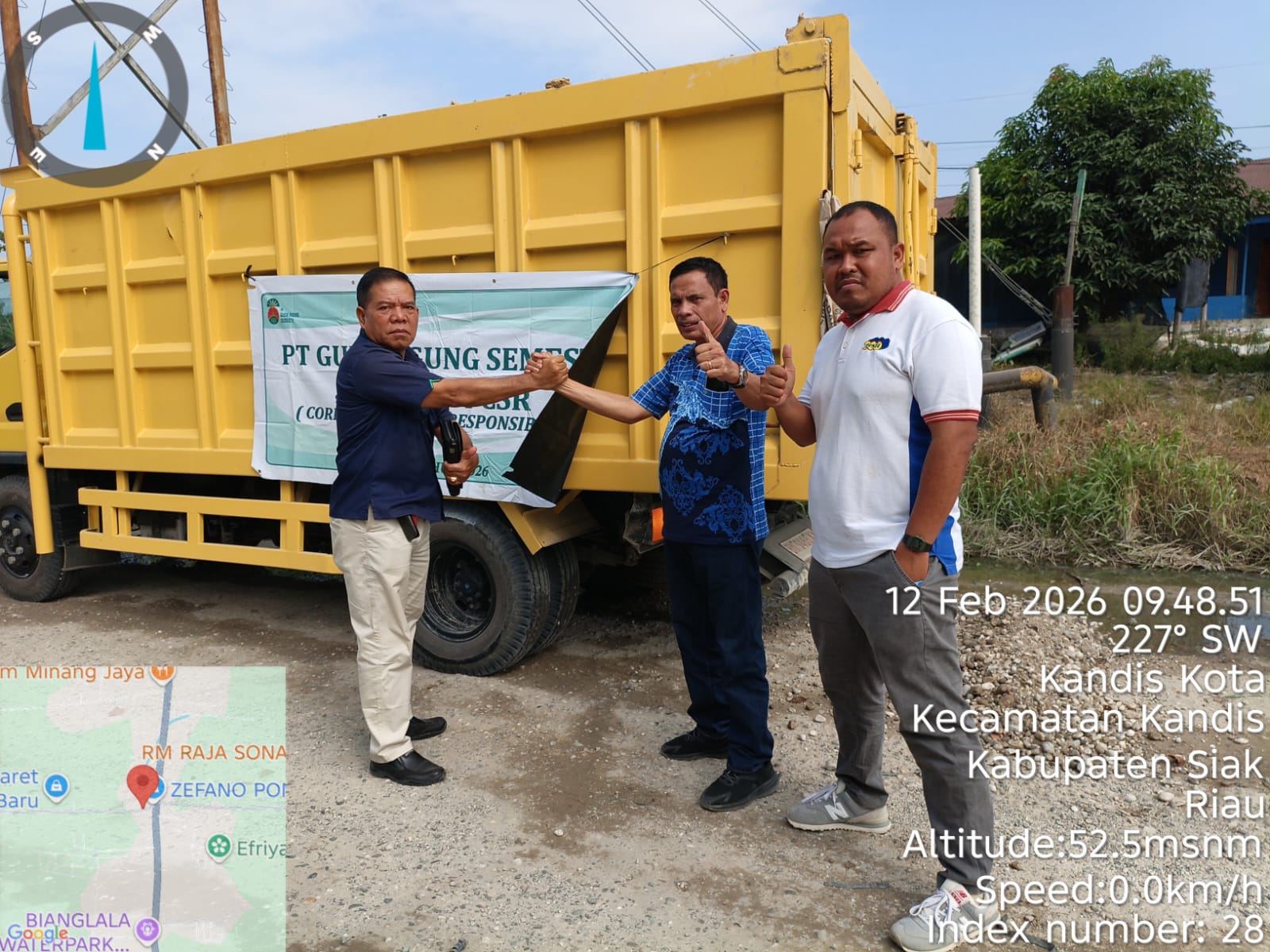 KANDIS – MATAHUKUM.ID – Sebuah bentuk kepedulian tinggi terhadap lingkungan dan masyarakat di wilayah Kecamatan Kandis, melalui gerakan bakti sosial, Humas dari PT. Guna Agung Semesta Mayor Purnawirawan H. Sitorus memberikan bantuan berupa bahan material semen dan pasir kerikil untuk memperbaiki jalan Simpang Libo Baru yang rusak parah, terletak di RT 03 RW 03 Kelurahan Kandis Kota Kecamatan Kandis Kabupaten Siak. Kamis, 12 Februari 2026.