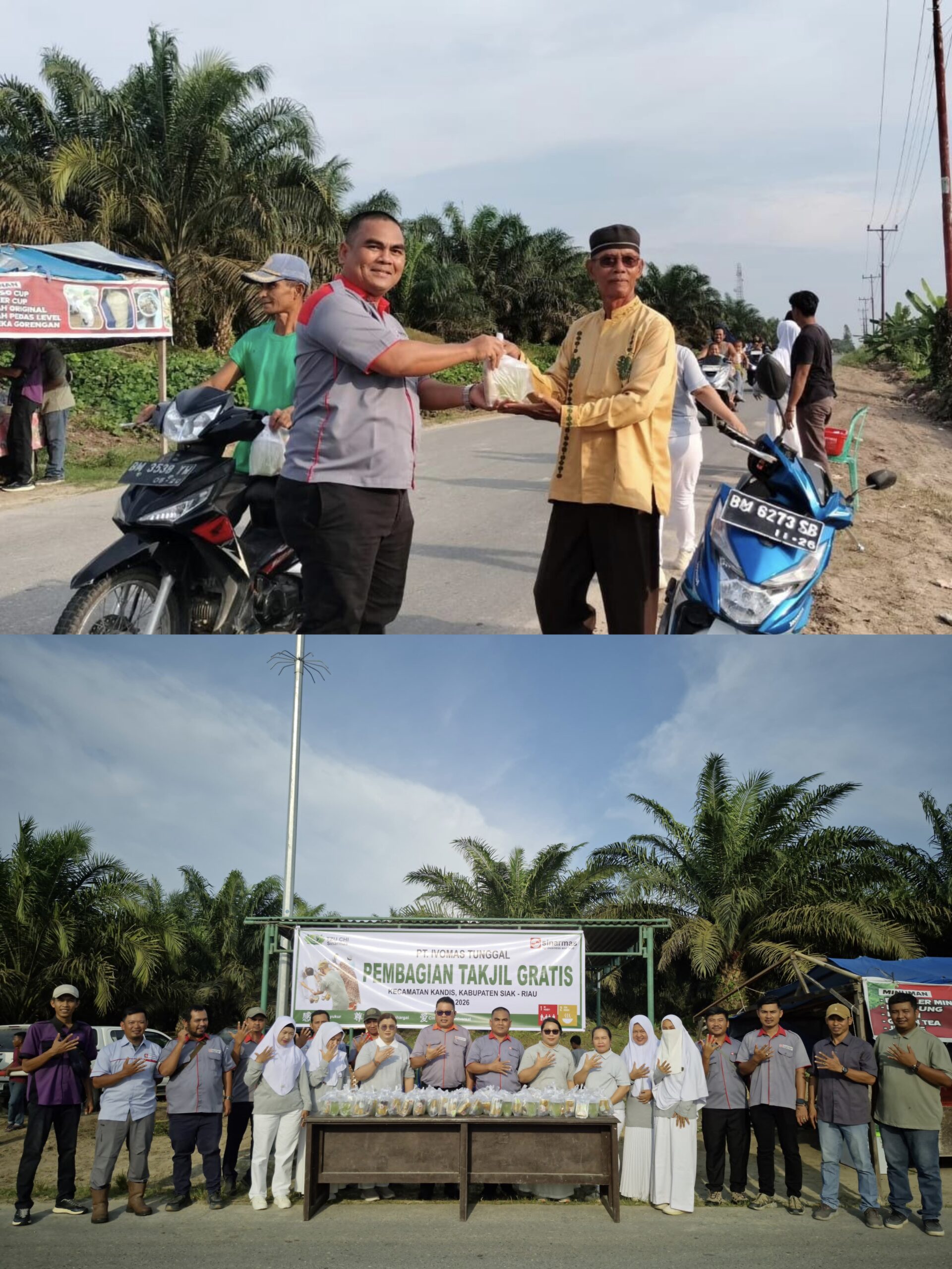 Kandis – Matahukum.id – PT. Ivomas Tunggal Region Siak yang berdomisili di Kecamatan Kandis, melaksanakan kegiatan pembagian takjil gratis secara serentak kepada masyarakat yang melintasi jalan, di empat titik. Jumat, 6 Maret 2026.