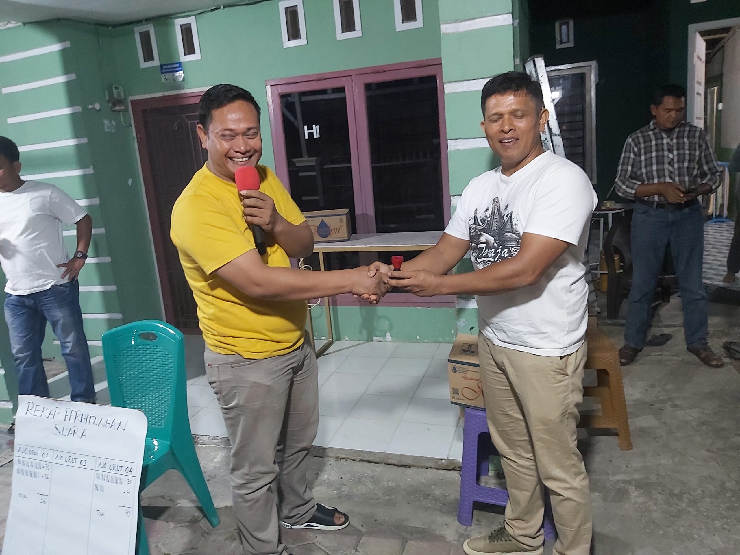 Setelah disampaikan pengumuman pemenang Ketua RT terpilih olah Ketua panitia pelaksana, mantan Ketua RT.01 Suandi Samajuntak diberikan kesempatan untuk mengucapkan selamat kepada kandidat, dan Suandi Simajuntak dengan suka rela langsung menyerahkan tampuk pimpinan Ketua RT kepada Ronny Hutabarat dengan ditandai penyerahkan Stempel RT dan berjabat tangan mengucapkan terima kasih.(mir)