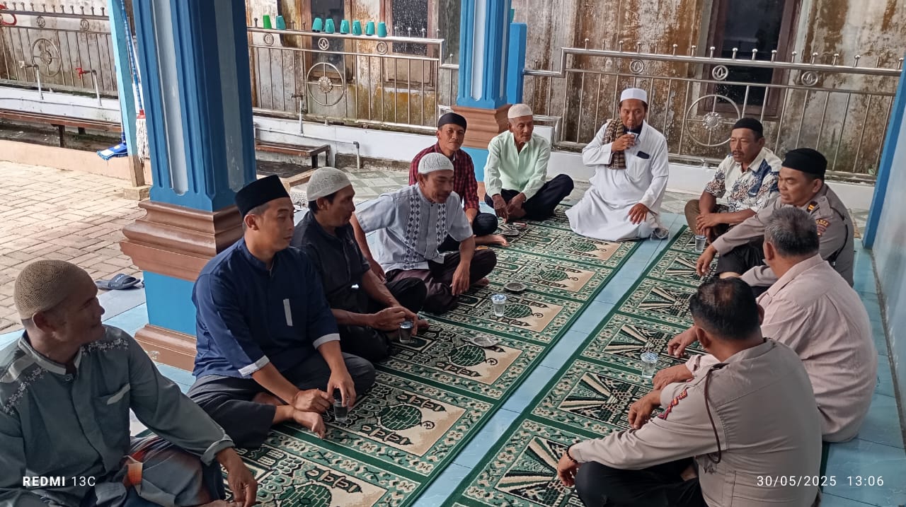 MATAHUKUM.ID/SIMALUNGUN -– Satuan Pembinaan Masyarakat (Sat Binmas) Polres Simalungun menggelar program “Jumat Curhat” di Masjid Ilham Sigundaba, Kelurahan Sondi Raya, Kecamatan Raya, Kabupaten Simalungun, pada Jumat, 30 Mei 2025. Kasi Humas Polres Simalungun AKP Verry Purba ketika dikonfirmasi pada pukul 13.10 WIB menjelaskan bahwa kegiatan ini merupakan implementasi program “Polri Untuk Masyarakat” yang bertujuan mendengarkan aspirasi masyarakat terkait situasi keamanan dan ketertiban (Kamtibmas) di wilayah mereka.