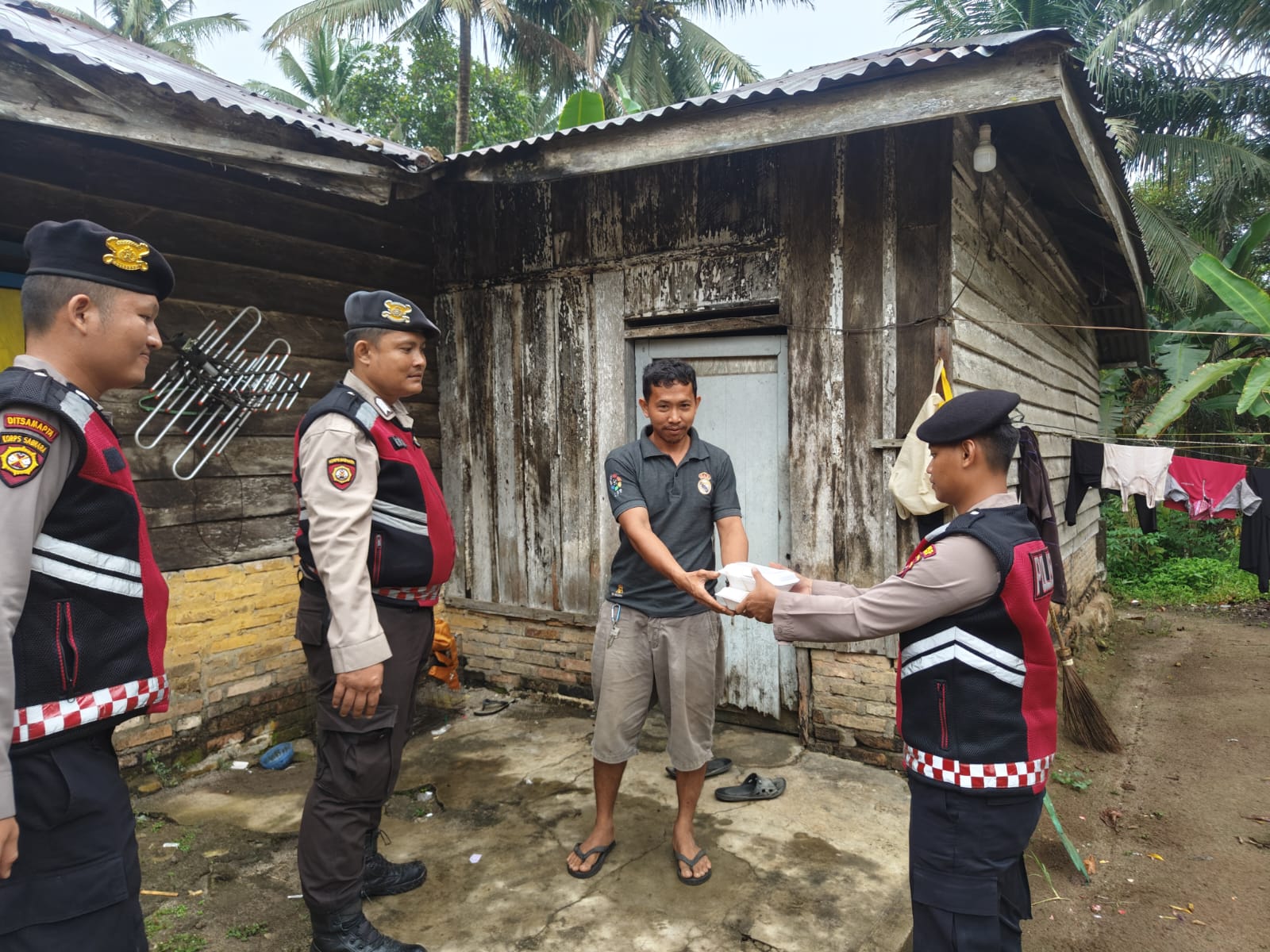 MATAHUKUM.ID/Batu Bara – Personel Satuan Samapta (Sat Samapta) Polres Batu Bara kembali melaksanakan kegiatan sosial Jumat Barokah dengan membagikan makanan kepada masyarakat kurang mampu di beberapa desa di Kecamatan Lima Puluh, Kabupaten Batu Bara, pada Jumat (14/2/2025).