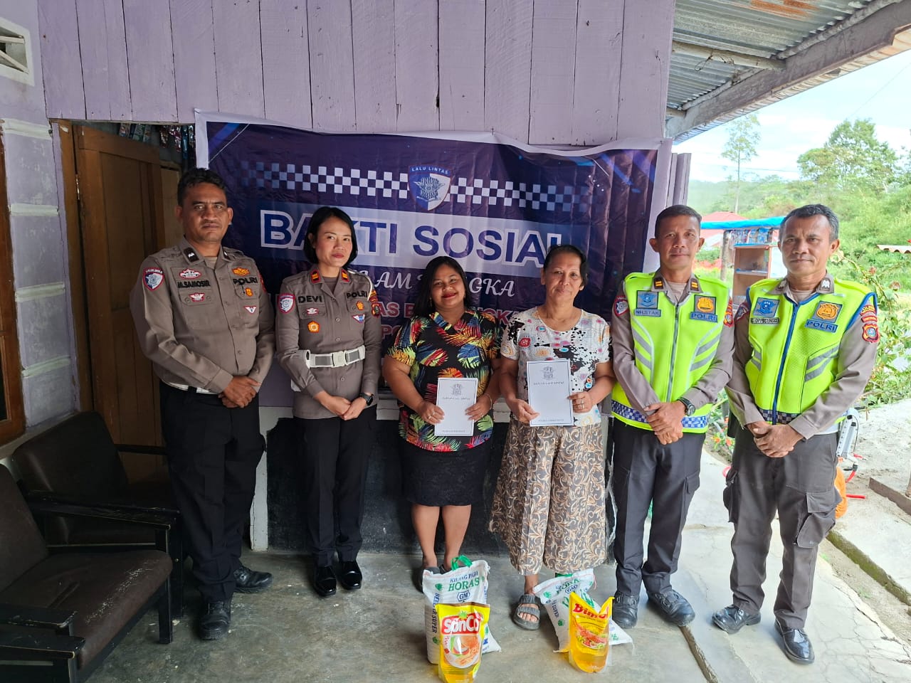 “Kegiatan bakti sosial ini diberikan kepada Ibu Hosna Sidabutar dan Ibu Hissa Sirait yang merupakan relawan laka lantas di wilayah Simarjarunjung yang telah menunjukkan dedikasi tinggi dalam membantu tugas kami,” ucap Iptu Devi Siringo Ringo.