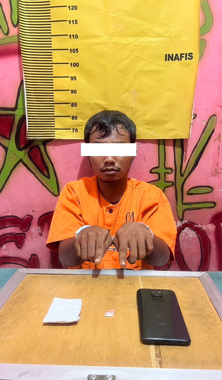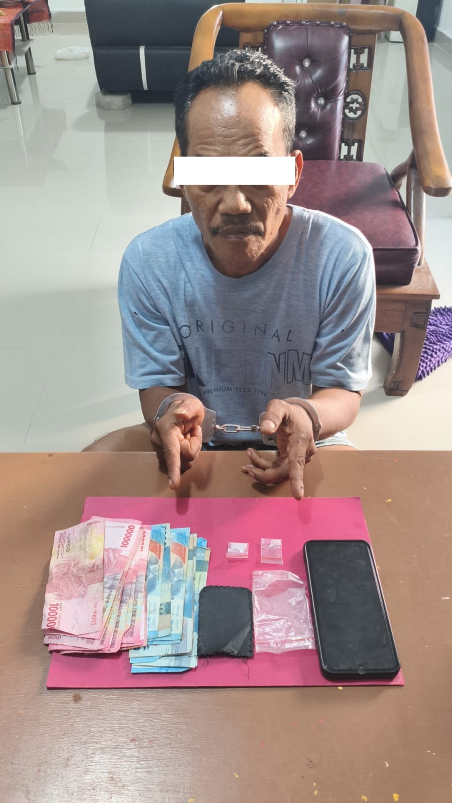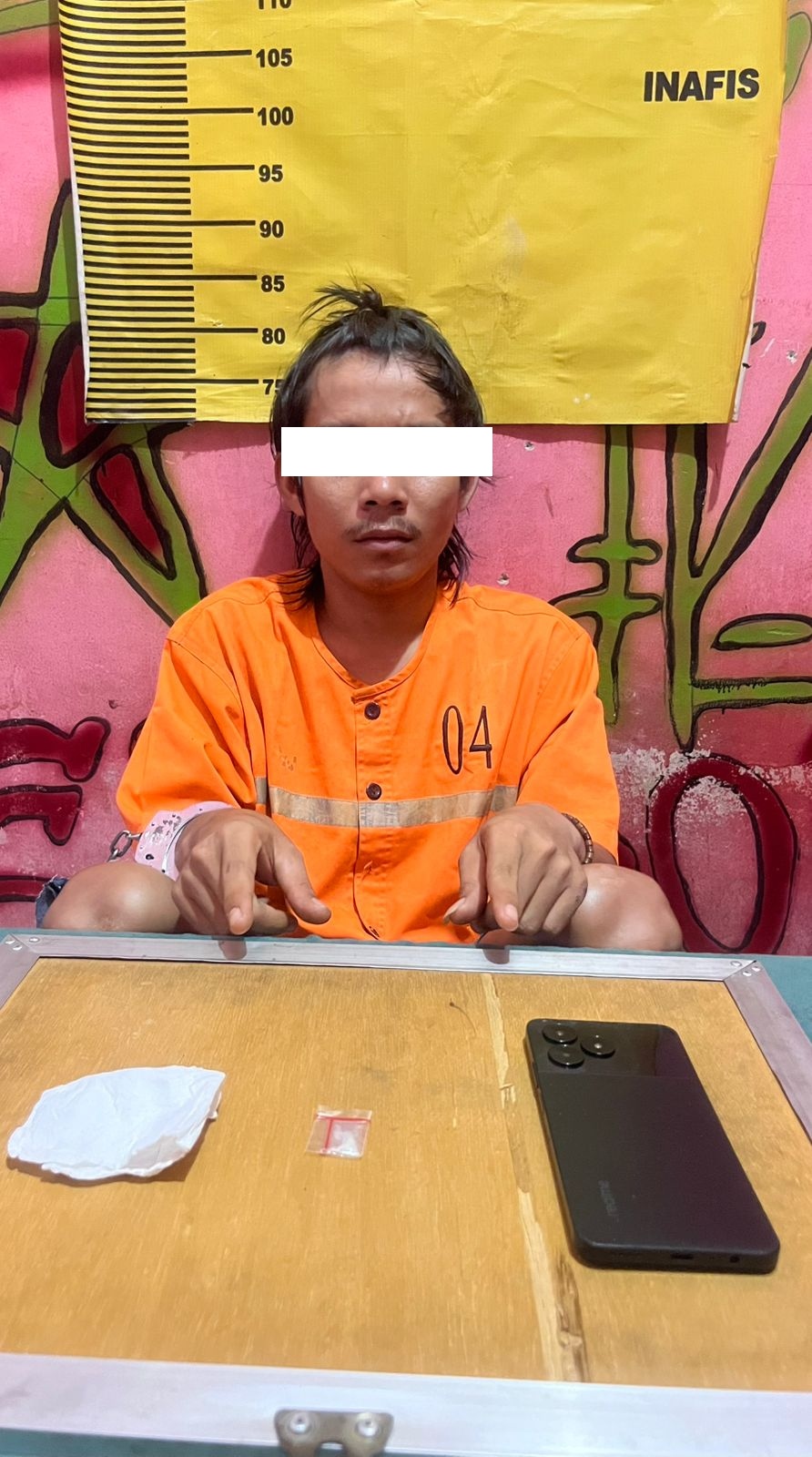 Dengan barang bukti berupa 2 paket kecil diduga sabu yang disimpan di kantong pakaian tersangka, 1 unit handphone merek Vivo warna biru yang diduga digunakan untuk komunikasi transaksi, serta uang tunai sebesar Rp1.700.000 yang diduga hasil dari peredaran narkotika. Selain itu, turut diamankan perlengkapan pendukung seperti sarung timbangan dan plastik pembungkus yang biasa digunakan untuk mengemas sabu.