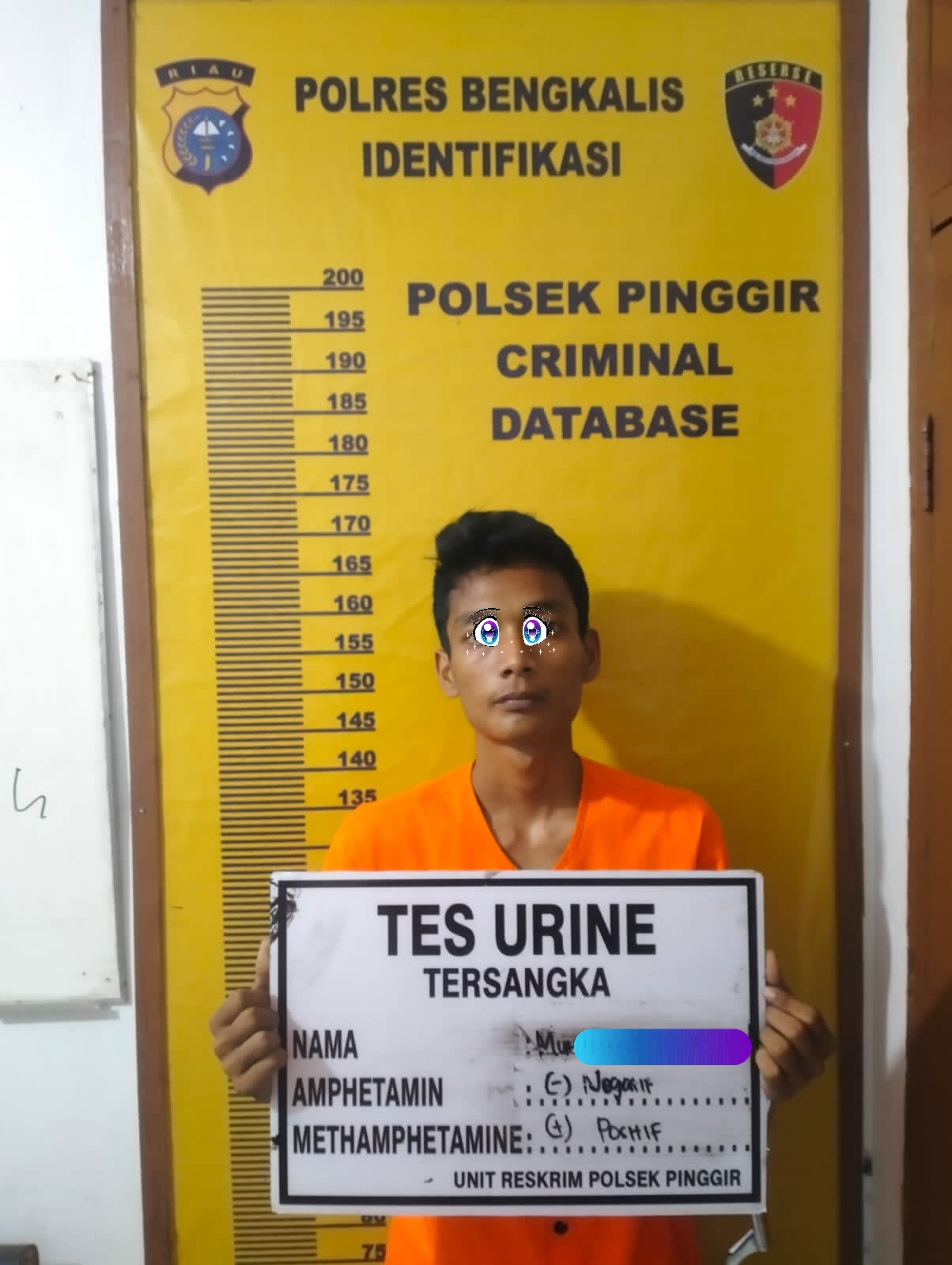 Selain itu, hasil tes urine terhadap pelaku menunjukkan positif mengandung amphetamine. Saat ini, pelaku beserta barang bukti telah diamankan di Polsek Pinggir guna menjalani proses hukum lebih lanjut.