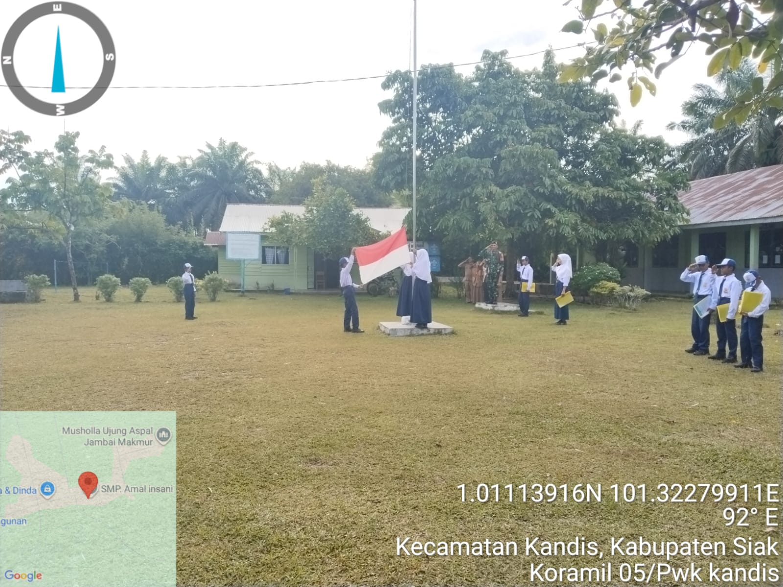 Turut hadir dalam pelaksanaan kegiatan upacara Bendera penaikan merah putih Kepala Sekolah SMPS Amal Insani., Babinsa Kampung Jambai Makmur Serda Roni Panjaitan., Dewan Guru dan Siswa Siswi SMPS Amal Insani.