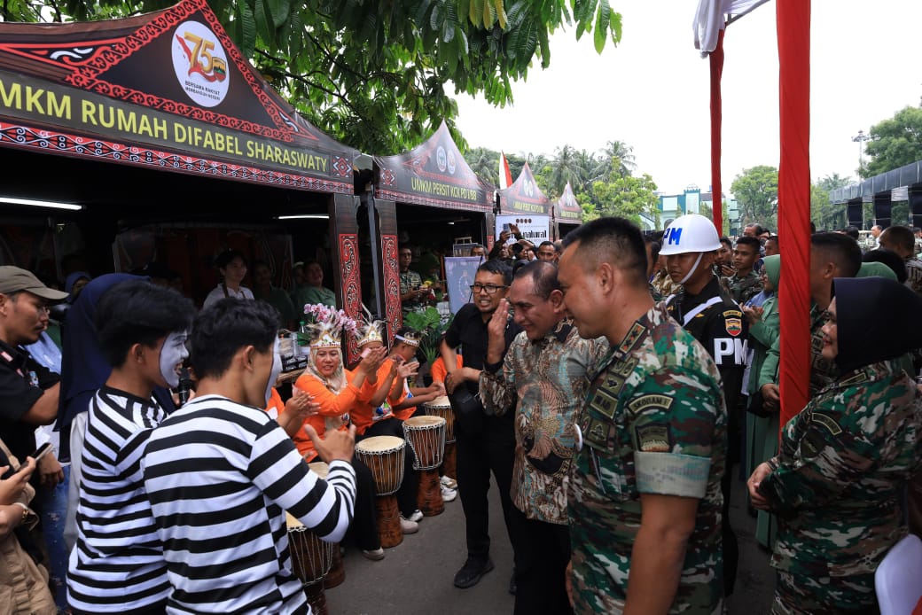 Rangkaian syukuran HUT ke-75 Kodam I/BB turut dimeriahkan dengan atraksi bela diri militer, penampilan Persit KCK Daerah I/BB, penyerahan piagam kepada prajurit dan satuan berprestasi, serta pemberian tali asih kepada warakawuri, veteran, dan anak yatim piatu.