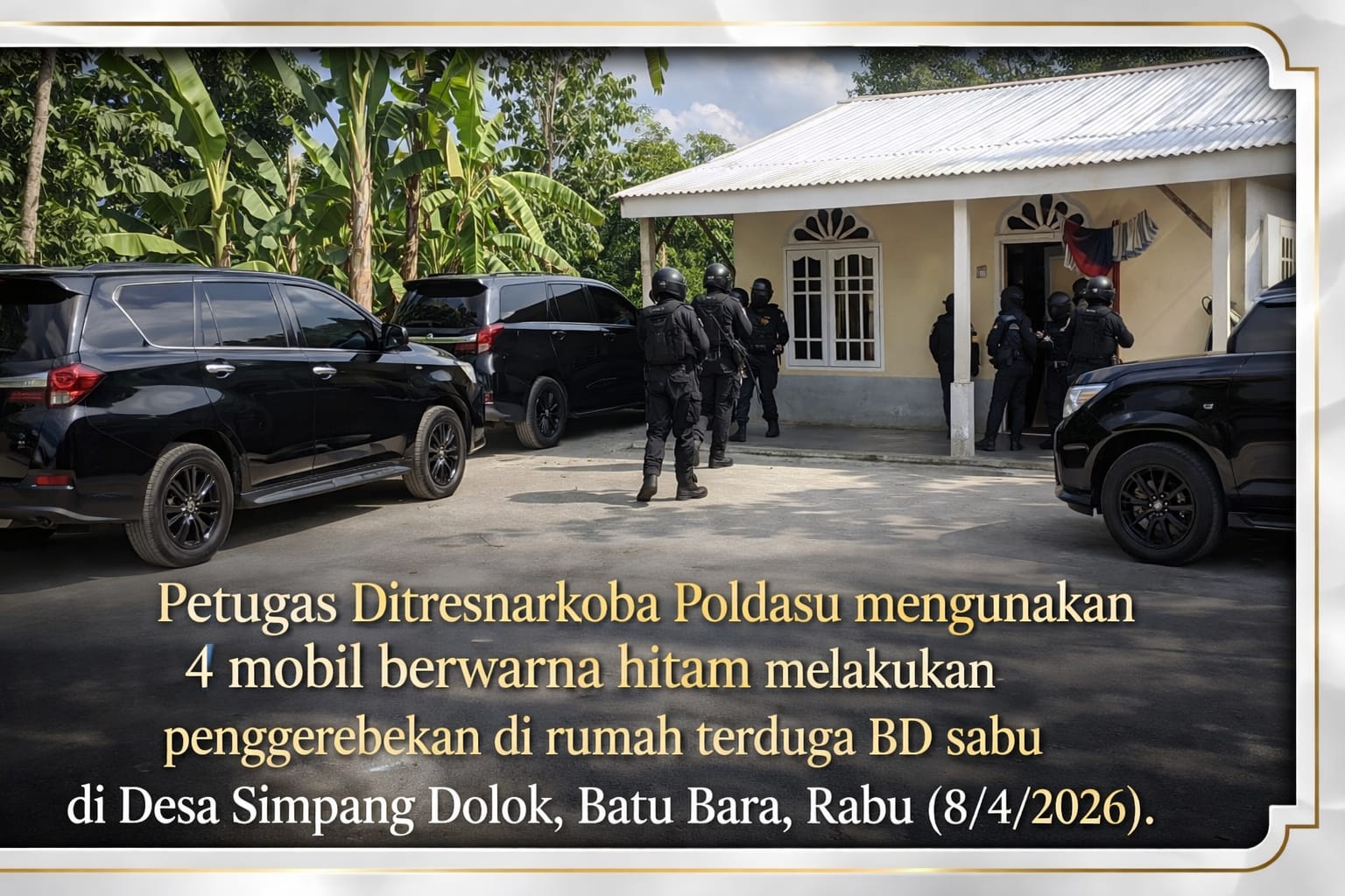 Terbaru, Tim Khusus Direktorat Reserse Narkoba Polda Sumatera Utara dilaporkan melakukan penggerebekan di Dusun I, Desa Simpang Dolok, Kecamatan Datuk Lima Puluh, Kabupaten Batu Bara, Rabu (8/4/2026) sekitar pukul 15.00 WIB.