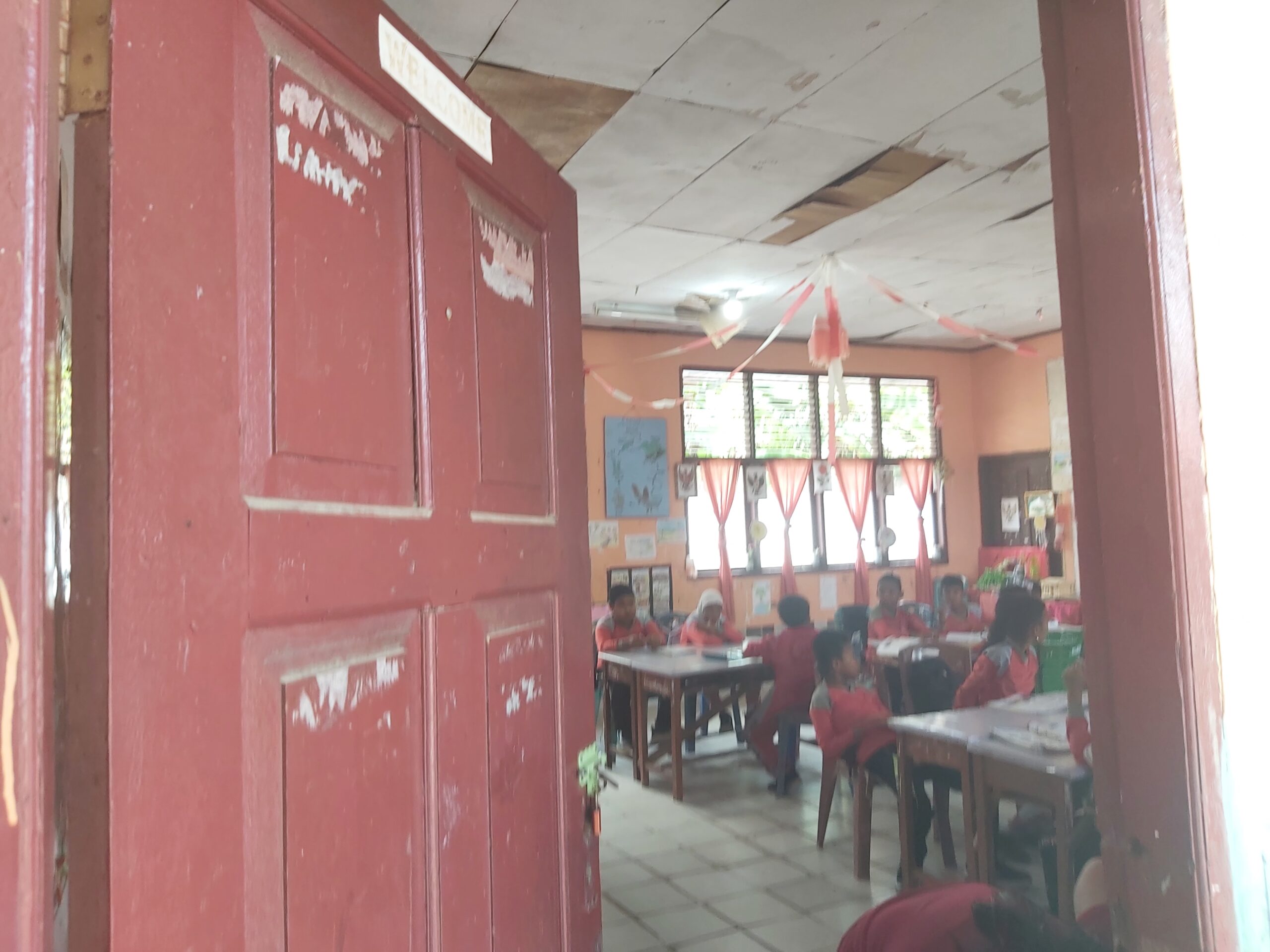 Duri,”matahukum.id – Untuk mengelabui terlihat plafon yang sudah lapuk meleleh dan berjuntai-juntai kebawah seperti sarang burung, setiap lokal kelas SDN 35 Mandau dihiasi dengan umbul-umbul kertas yang berwarna-warni.