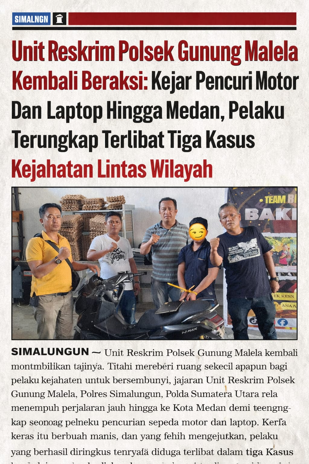 Unit Reskrim Polsek Gunung Malela Kembali Beraksi: Kejar Pencuri Motor Dan Laptop Hingga Medan, Pelaku Terungkap Terlibat Tiga Kasus Kejahatan Lintas Wilayah