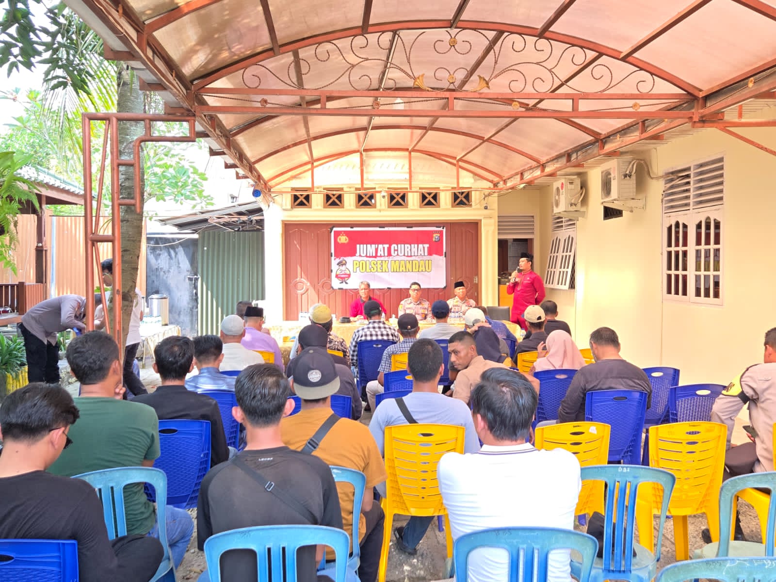 Progran Jumat Curhat Polsek Mandau bersama Masyarakat dipimpin oleh Kapolsek Mandau Kompol Primadona, S.I.K,.M.Si didampingi Kanit Binmas AKP Indra Varenal, SH dan Bhabinkamtibmas Polsek Mandau.